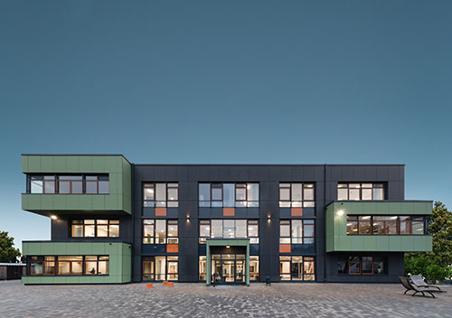 Offen und zukunftsorientiert integriert sich das neue, zentral gelegene „Open Campus“- Gebäude mit rund 6.200 m² nicht nur als Schule in die Gemeinde Quickborn – vielmehr bietet es auch Raum für Vernetzung und Innovation …
